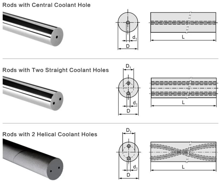 ЦементированныйТвердосплавные стержни с двумя винтовыми отверстиями для подачи СОЖ.
