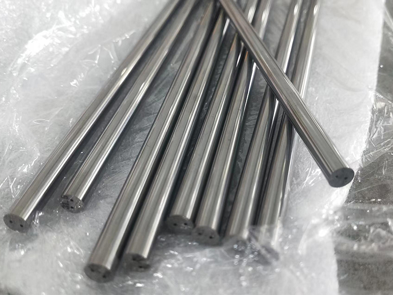 Стержни с двумя прямыми отверстиями для охлаждающей жидкости производятся с помощью сложного процесса, включающего смешивание, прессование, спекание и шлифование. Сначала порошок карбида вольфрама смешивают со связующим, например кобальтом или никелем, до образования однородной смеси. Затем смесь прессуют в форме стержня с двумя отверстиями в центре. Затем стержень спекается при высокой температуре и давлении, чтобы связать частицы вместе и сформировать твердый материал. Наконец, стержень шлифуется для достижения желаемого размера и качества поверхности.